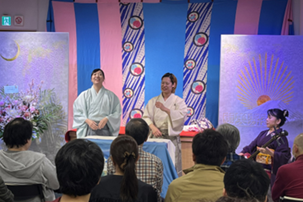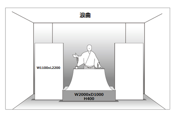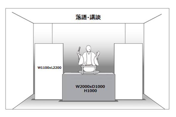 会場最奥部にステージを設置し落語・講談・浪曲などの古典芸能公演が可能です