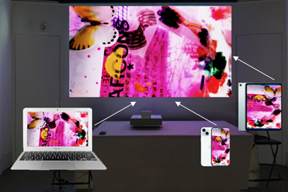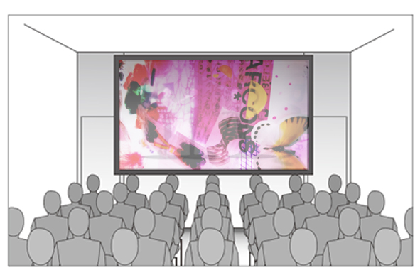 150インチ大型プロジェクターを使用した映像作品の鑑賞会が実施できます