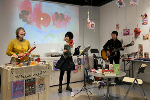 プロジェクター画像を背景にミニライブやYoutube撮影も可能です